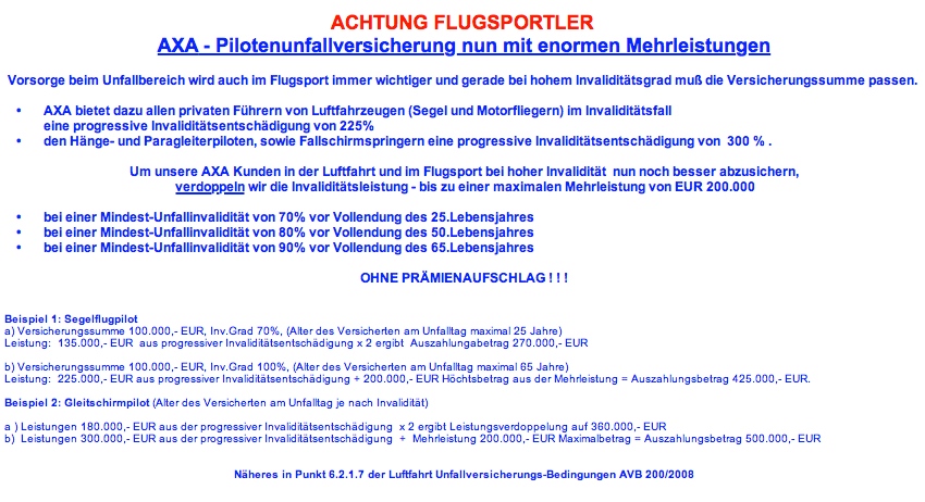 | • | versichert ist auch die Nutzung von motorisierten Hänge- und Paragleitern |